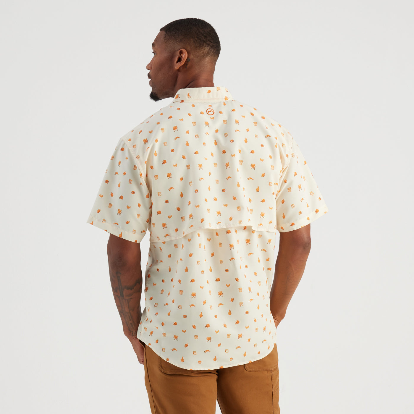 Upgrade your outdoor apparel collection with the Magellan Outdoors x Whataburger Laguna Madre Micro Pattern Short Sleeve Fishing Shirt. The button-down closure gives you a polished look, and the lightweight composition allows freedom of movement. The ventilation provides the shirt airflow, and the UPF protection offers peace of mind while spending time outside.