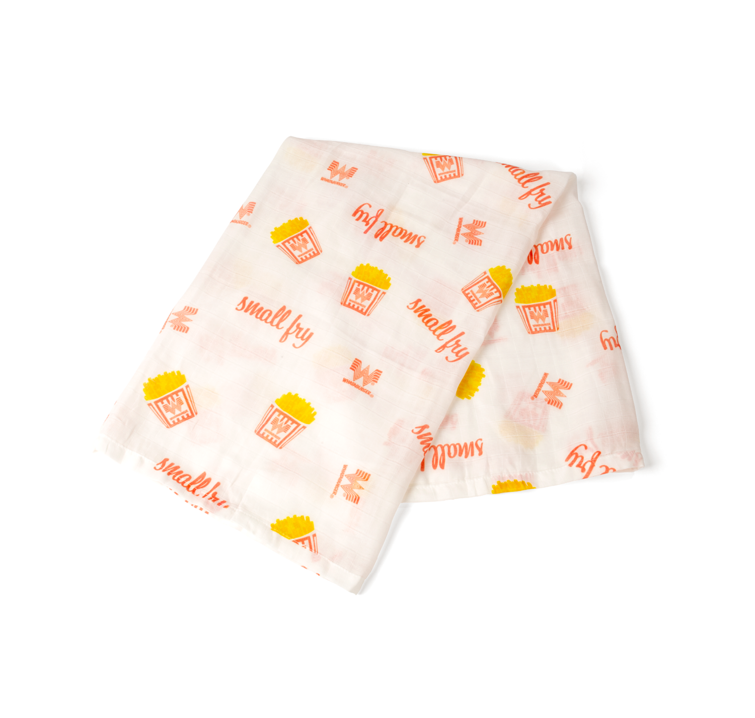 Wrap your little one in cuddly, soft comfort with the Small Fry Baby Swaddle Blanket. Made from 100% cotton muslin, this 45″ x 45″ swaddle is the perfect size for your small fry. Plus, the playful french fry design adds a touch of fun to naptime.