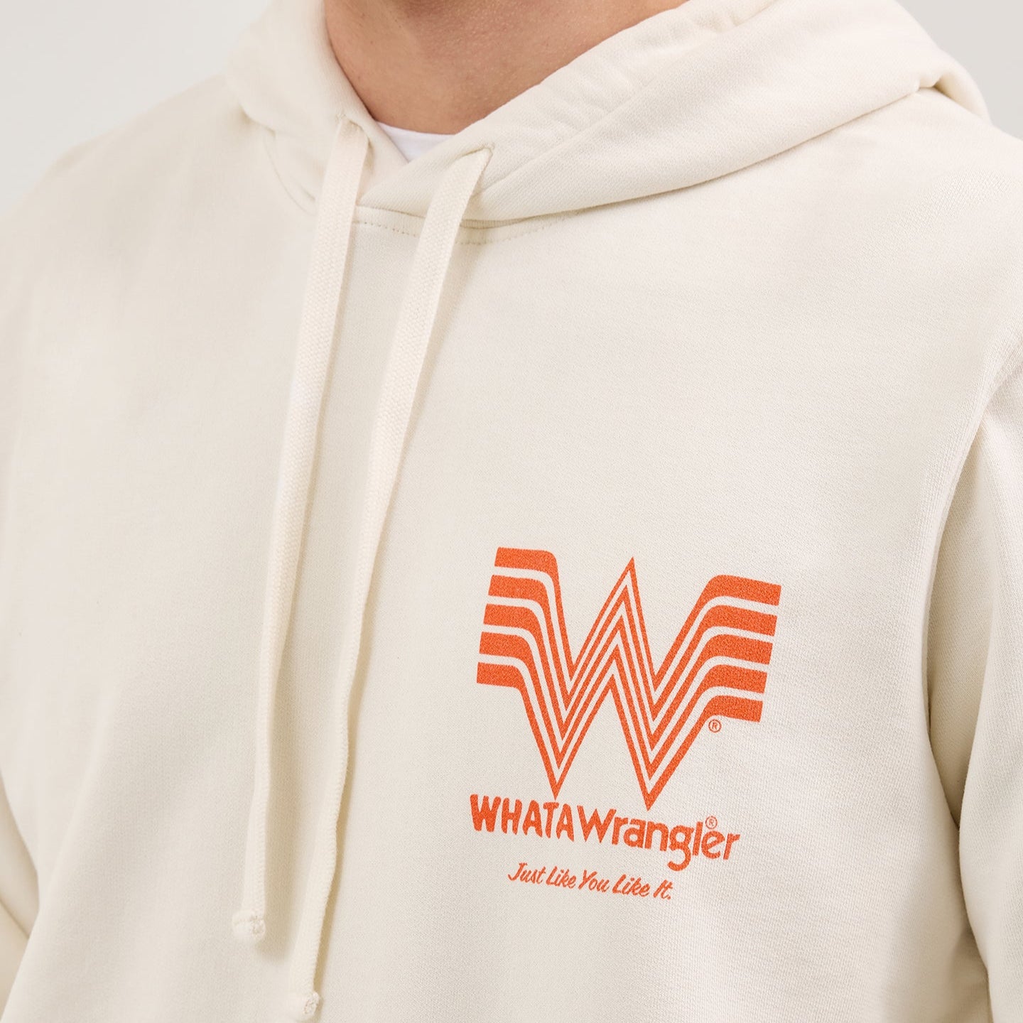 Cozy up the cowboy way with this limited-edition Wrangler® x Whataburger® Men’s Hoodie. Blending two of your favorite names in denim and food, you’ll be reaching for this hoodie on cooler nights spent under the rodeo lights or for late night bites at your favorite burger joint. It’s crafted from a comfortable cotton blend, complete with ribbed knit trim, a drawstring at the hood, and a kangaroo pocket. Plus, it comes with a mash-up of your favorite logos at the chest and a retro-inspired graphic of ropers riding ahead of the iconic “flying W” sign.