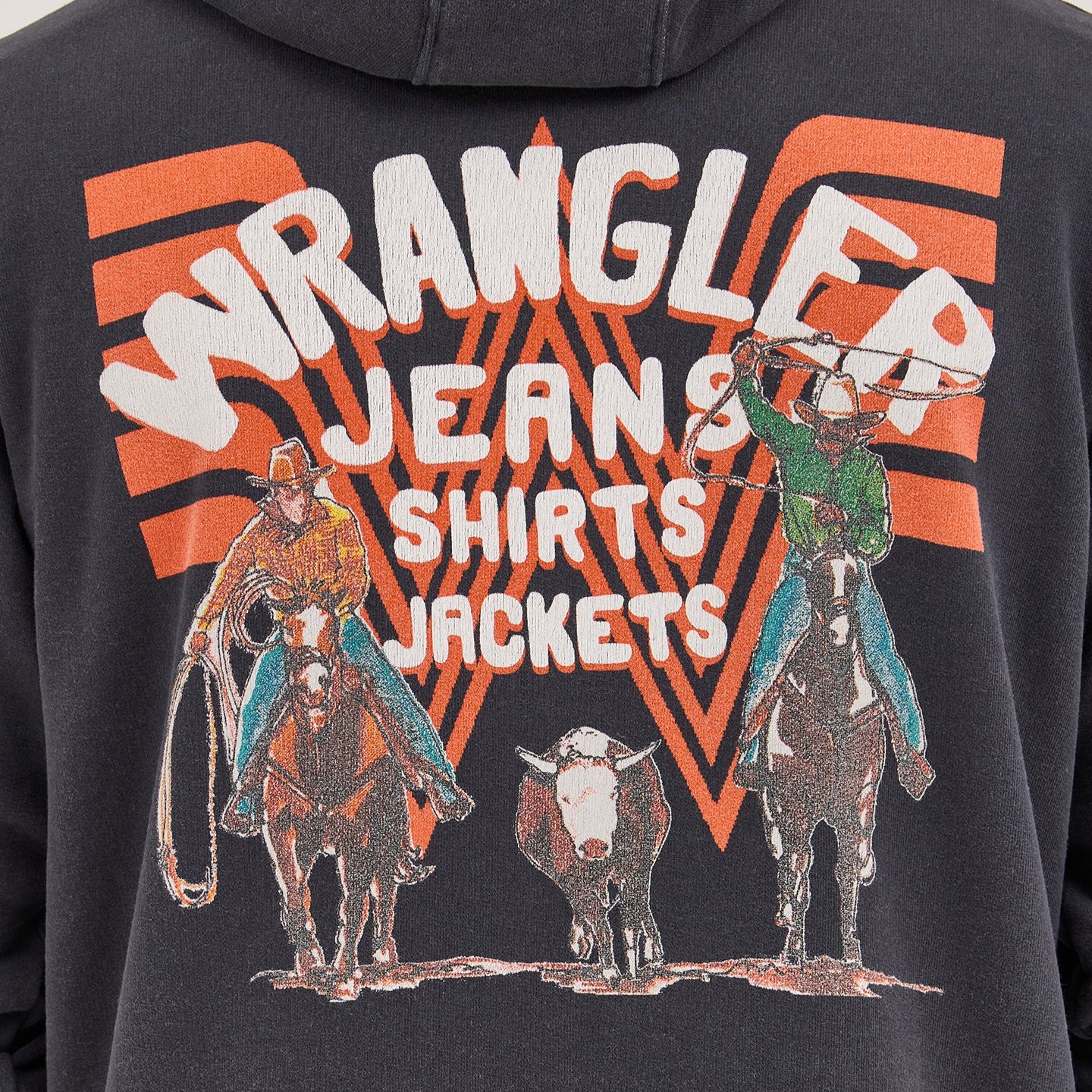 Cozy up the cowboy way with this limited-edition Wrangler® x Whataburger® Men’s Hoodie. Blending two of your favorite names in denim and food, you’ll be reaching for this hoodie on cooler nights spent under the rodeo lights or for late night bites at your favorite burger joint. It’s crafted from a comfortable cotton blend, complete with ribbed knit trim, a drawstring at the hood, and a kangaroo pocket. Plus, it comes with a mash-up of your favorite logos at the chest and a retro-inspired graphic of ropers riding ahead of the iconic “flying W” sign.