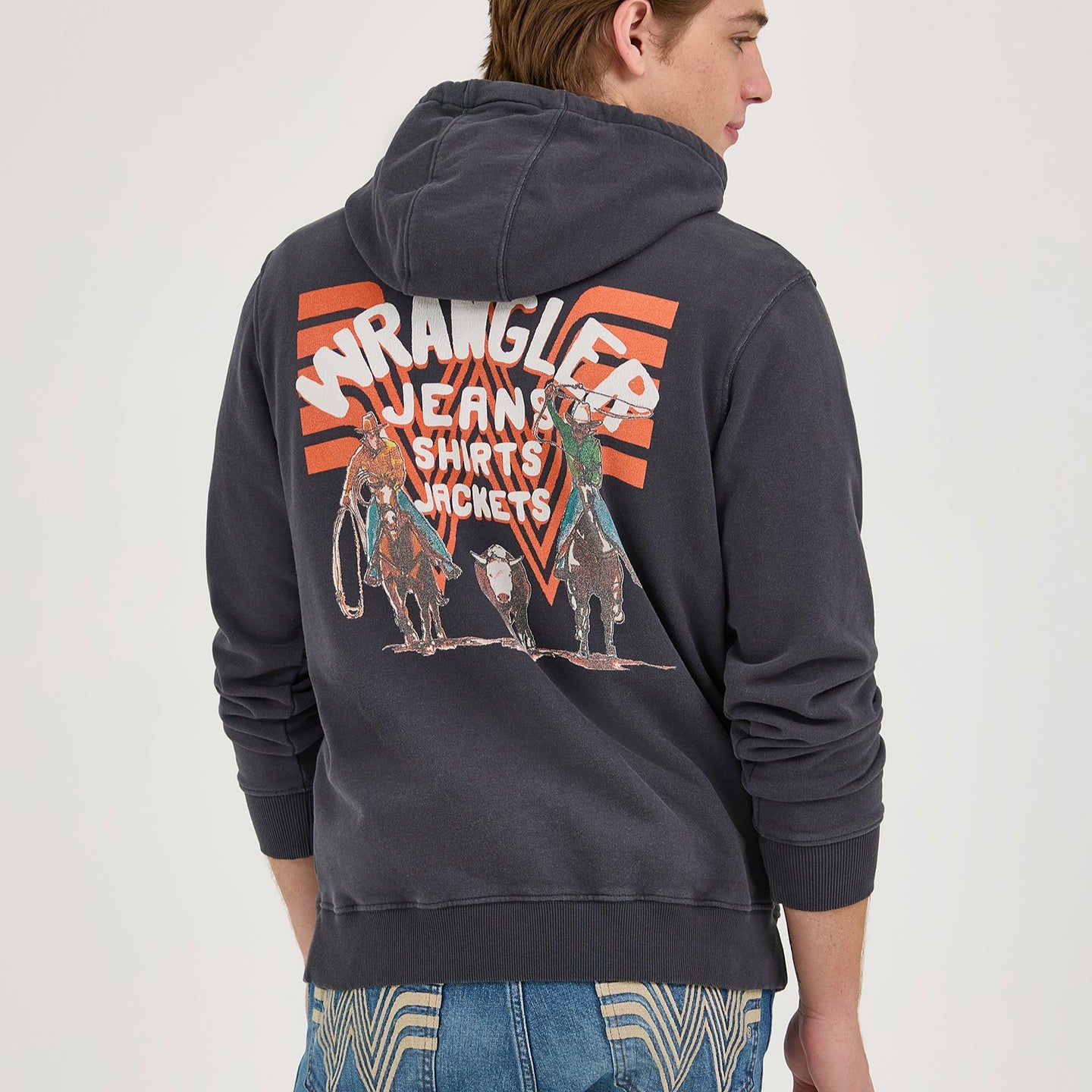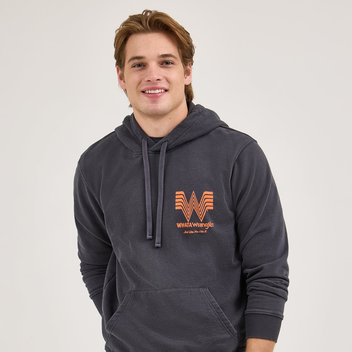 Cozy up the cowboy way with this limited-edition Wrangler® x Whataburger® Men’s Hoodie. Blending two of your favorite names in denim and food, you’ll be reaching for this hoodie on cooler nights spent under the rodeo lights or for late night bites at your favorite burger joint. It’s crafted from a comfortable cotton blend, complete with ribbed knit trim, a drawstring at the hood, and a kangaroo pocket. Plus, it comes with a mash-up of your favorite logos at the chest and a retro-inspired graphic of ropers riding ahead of the iconic “flying W” sign.